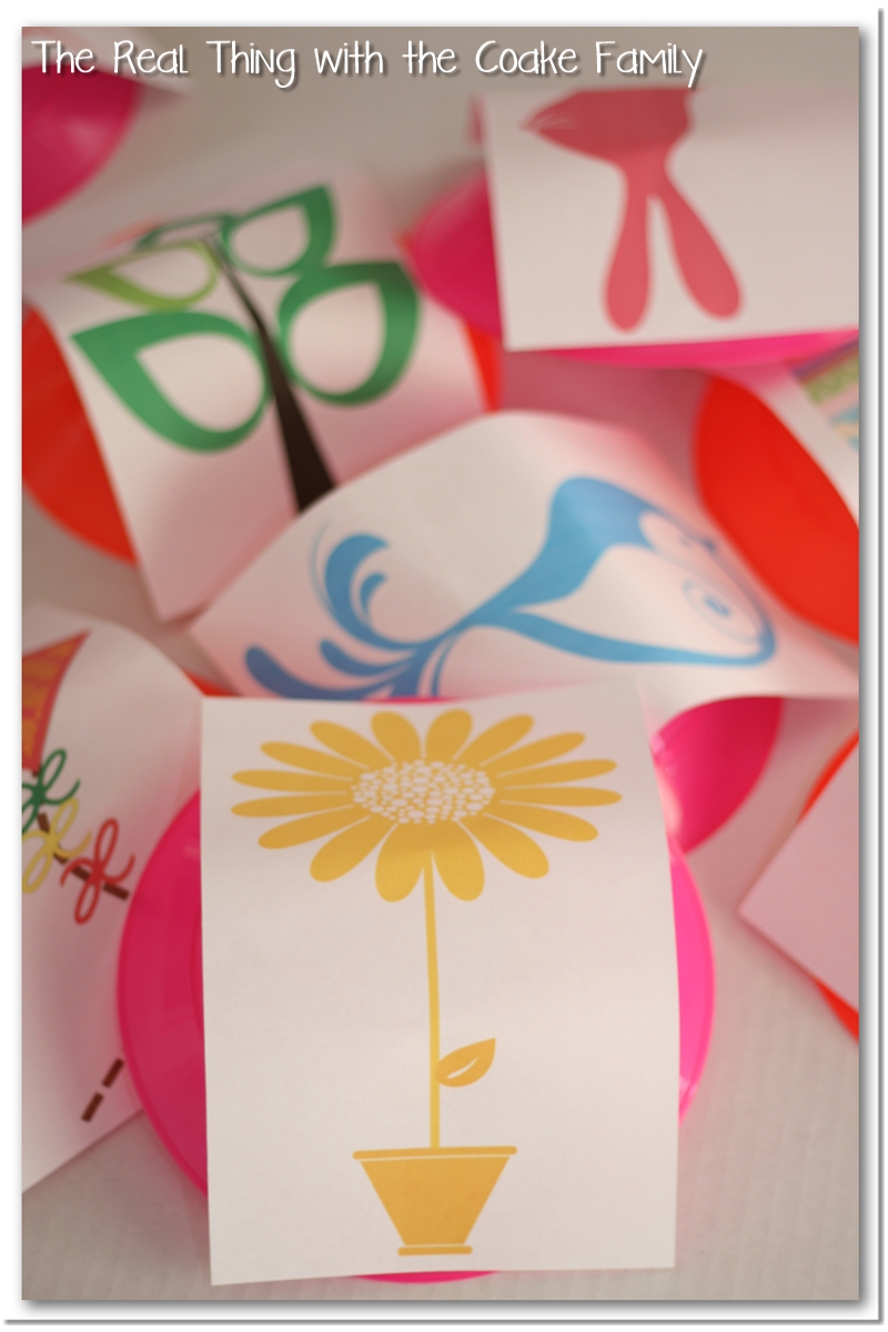 We used this as an Easter themed game, but you could easily modify it for any event or use numbers for everyday fun. I modified this idea from Family Fun March 2013 magazine. They used numbers in their version, but I wanted an Easter game so I modified it a little bit. Their version was also designed for only two players. I modified it for the whole family to play.
