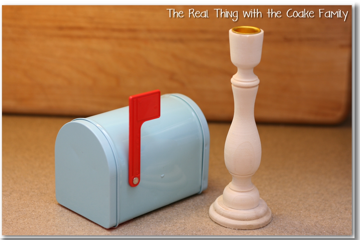 . They have such fun ideas in their magazine. My daughters opened up this month’s issue and saw this idea. They loved it! I just happened to find the little mailboxes in the dollar section of Target the next day! Love when that happens. Then it was just a simple trip to 3 craft stores to find the candlesticks that act as a stand. Why couldn’t they have had them at one of the first 2 stores? Oh well, we got them and they are done and super cute…so on with the tutorial for you.