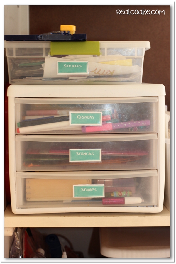 I’m here today with another follow up organizing post. I’m going to show you our craft area organization using printable labels. This was a quick and easy project that makes craft clean up just a little bit easier.