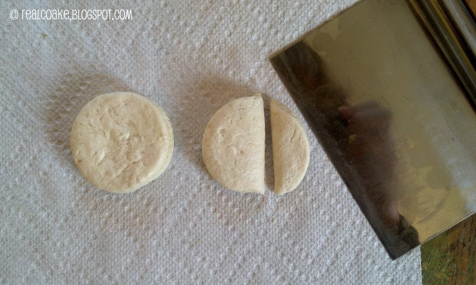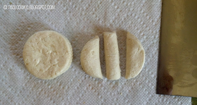 2. Cut across one of the biscuits like you see in the picture. Don’t cut in the center of the biscuit.