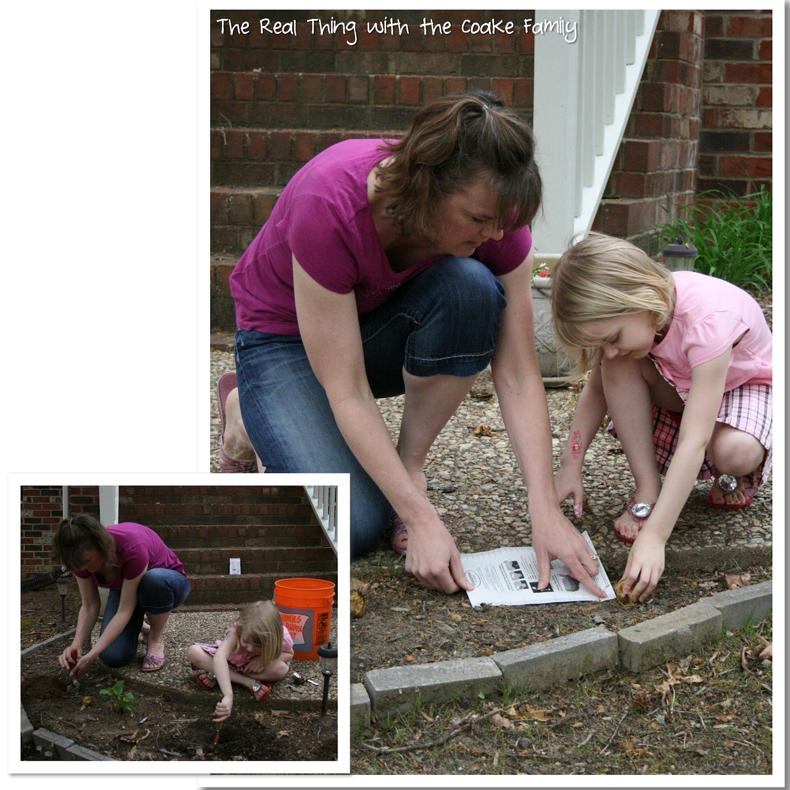 Above, you can see our starting point. Our sad flower empty flower bed. A trip to Lowe’s for flowers was a part of the project. Pumpkin chose two types of flowers. I figured since the Lilies were guaranteed to grow we couldn’t go wrong. The seeds were very inexpensive. We planed to try to get them to grow since Pumpkin wanted them very badly(she will be a Daisy Girl Scout in the fall and has been counting down, so the flowers go along with the countdown). In case you can’t tell, I stink with plants. Unless I can plant it and it lives with the rainfall we get, it doesn’t stand a chance in my yard. I definitely crossed my fingers and hoped the guaranteed to grow would grow for my sweet Pumpkin.