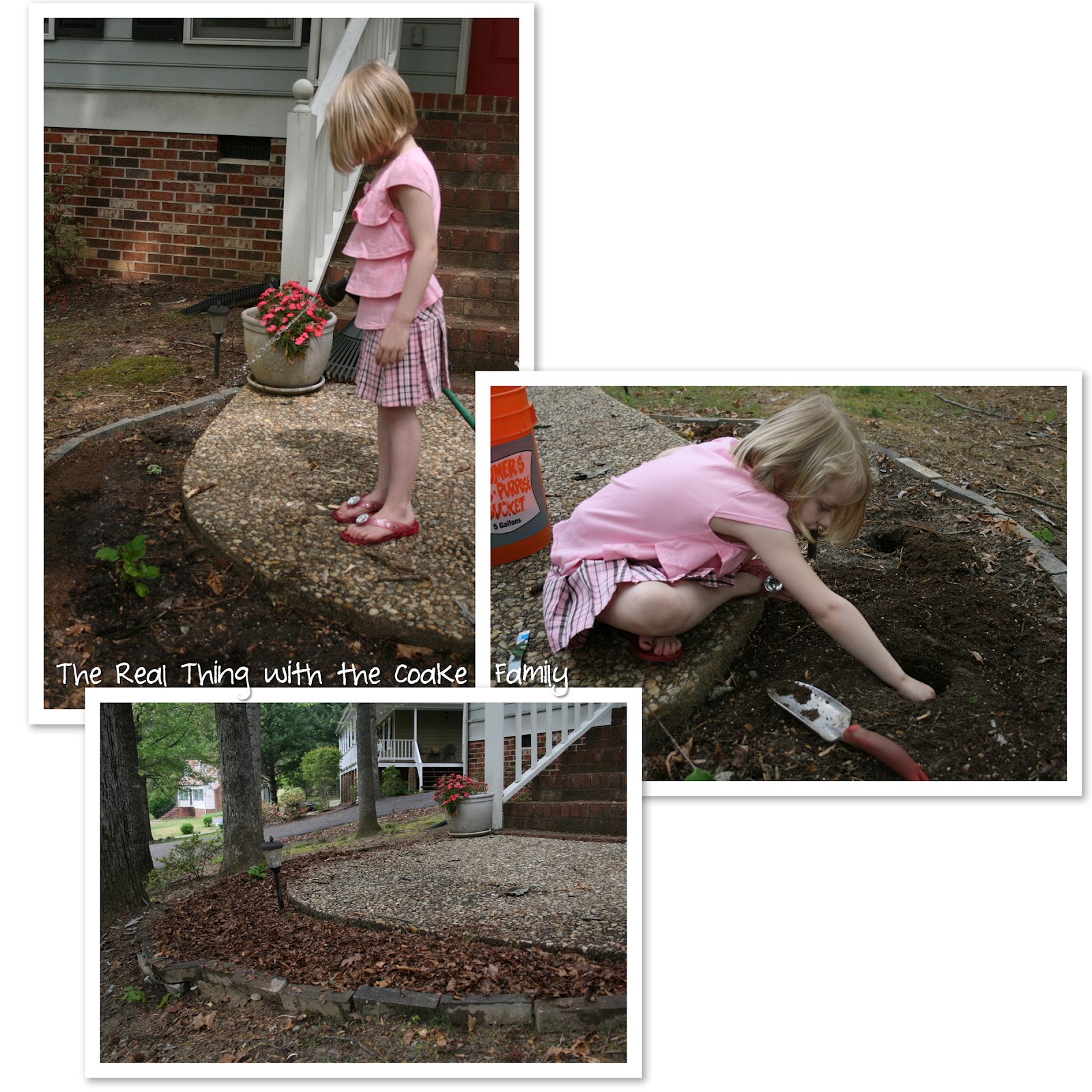 After planting all the bulbs, we planted the daisy seeds (none of them ever grew). We gave our new plants a layer of leaf mulch and of course, Pumpkin watered her new plants. Then the waiting began. Who knew that Lilies take so long to grow and bloom (not me as you can tell).