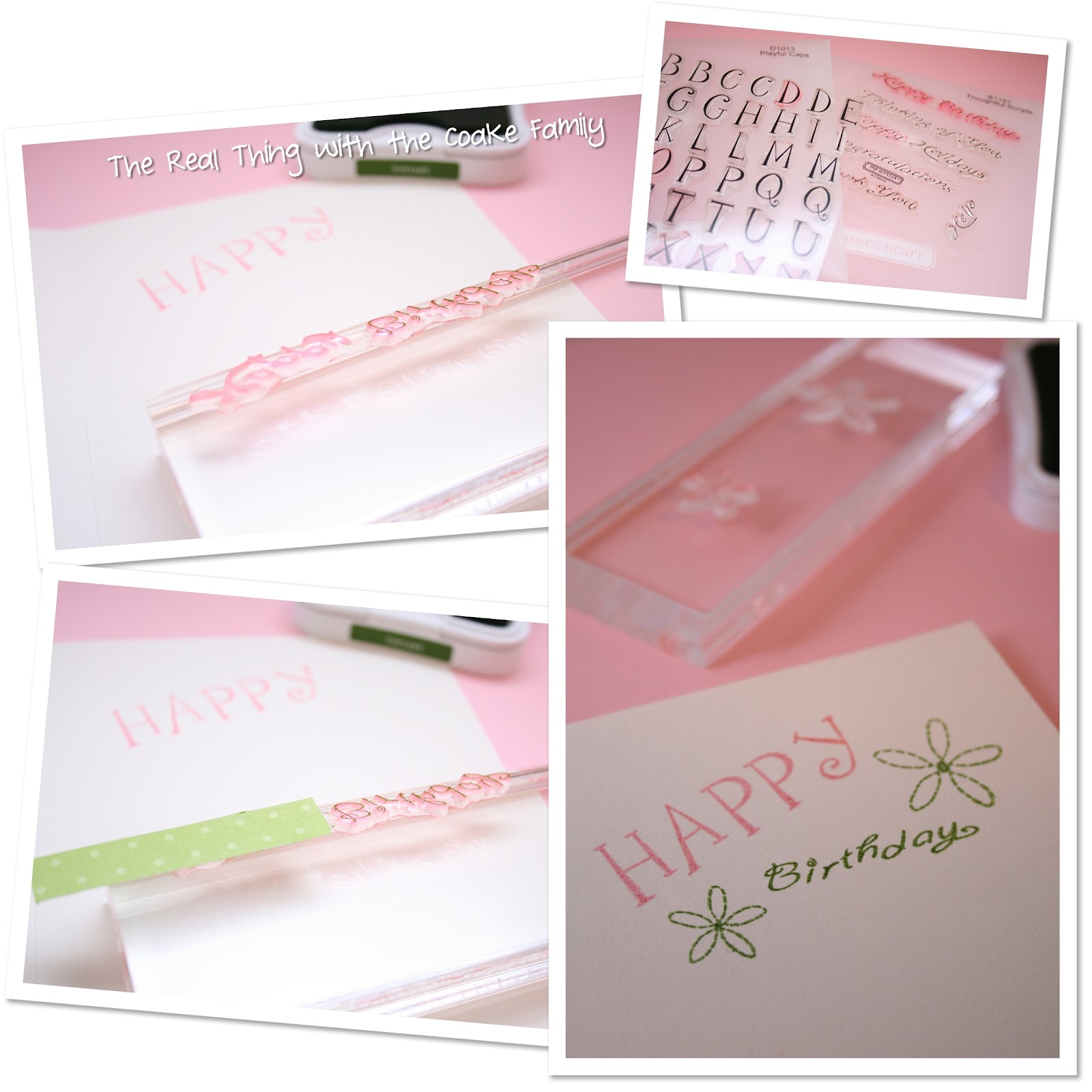For the inside of this card, I wanted to have “Happy Birthday” as it was a birthday card. I didn’t want my fonts to be too matchy matchy. I used 2 different stamp sets. For the ‘Birthday’ portion, it was part of a stamp that said ‘Happy Birthday.’ I only wanted the ‘Birthday’ portion. To do this, I inked up my stamp and used a piece of leftover scrap paper to cover up the ‘Happy’ portion of the stamp while stamping. You can see all of that above in the pictures. You can also see that I then added some stamped flowers.