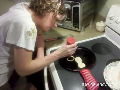 Anyway, Pumpkin choose that we would have Little Squirt Pancakes (which are on page 10) and Very Berry Smoothies (p. 64) for dinner. After a little searching and finally finding squirt bottles, at the dreaded Wal-Mart, we were ready to make dinner.