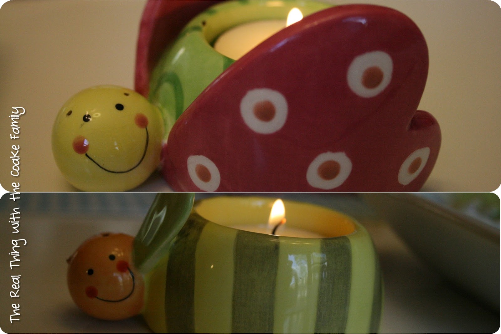 They are from Yankee Candle at least 8 or 9 years ago. They used to have antennas, but between two moves(from the bottom to the top of the country and then across the country…big moves) and two children, they are gone now. I still use them and love them. They’re also used to be a cute little wheelbarrow, but the movers broke it in one of our moves…boo!