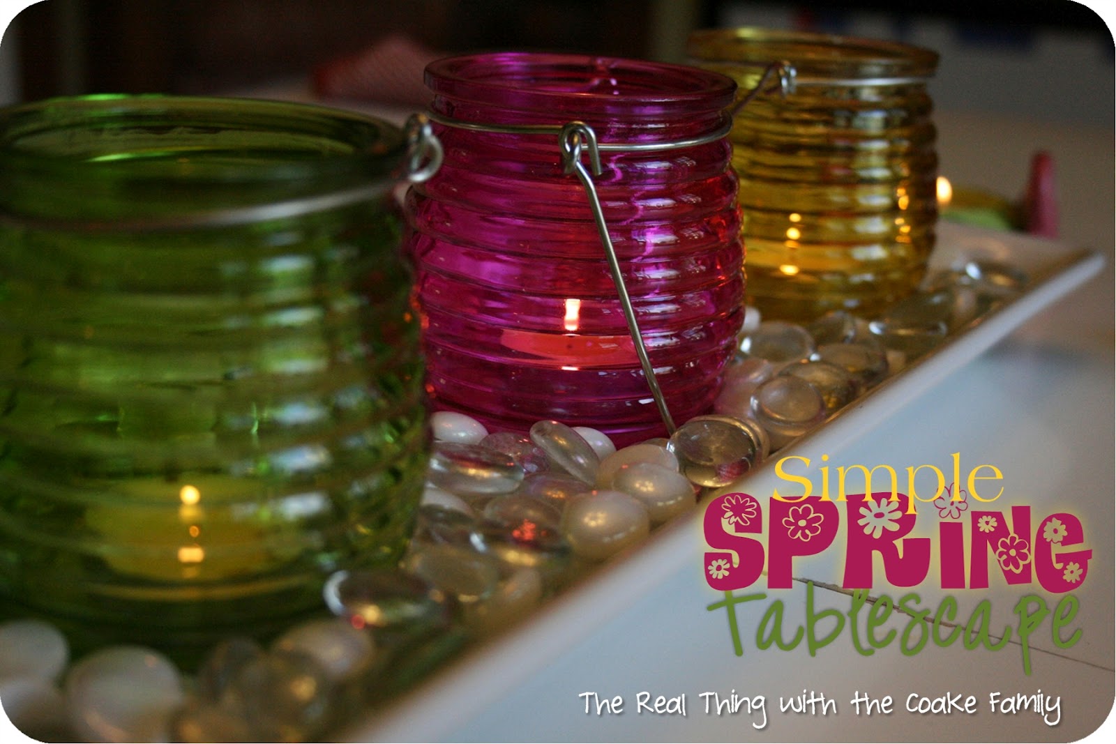 Once again, I see gorgeous tablescapes on so many blogs, but my kids are still fairly young and as our table has so many uses. I have to keep my centerpiece simple. It needs to be easy to move off the table and not expensive or too fancy for our lifestyle. I still like to change things around for different seasons and holidays.