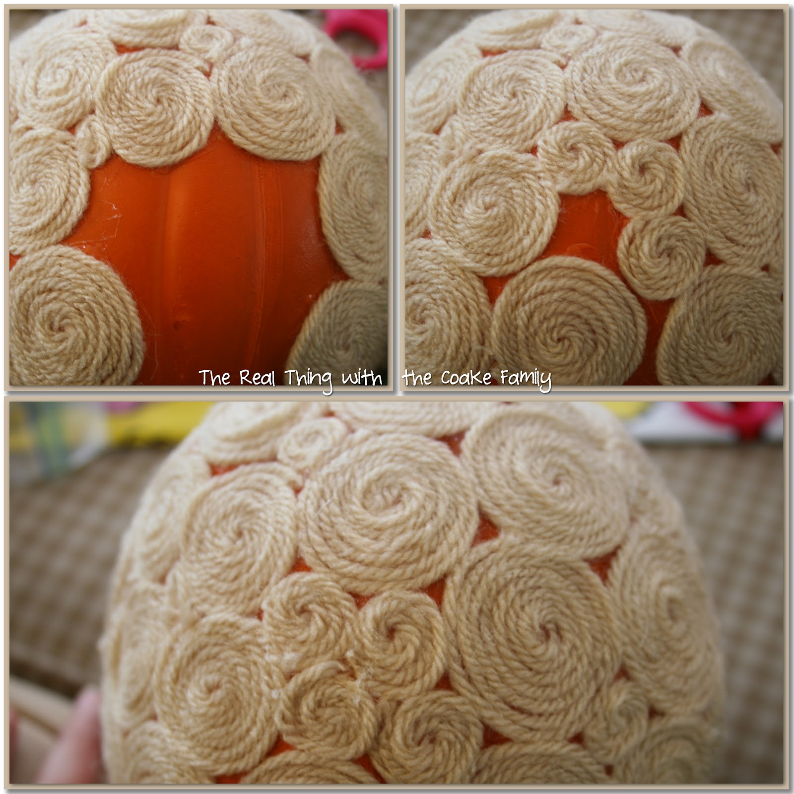 Oh, I like the orange showing through. I think your pumpkin is adorable! I’ve never seen any done with yarn. I think I might do the same, I went to Dollar Tree today and picked up some pumpkins, had planned on painting them but now I see yours and have about decided that I would like to do some like you. If I do, I’ll certainly link back to you for my inspiration.