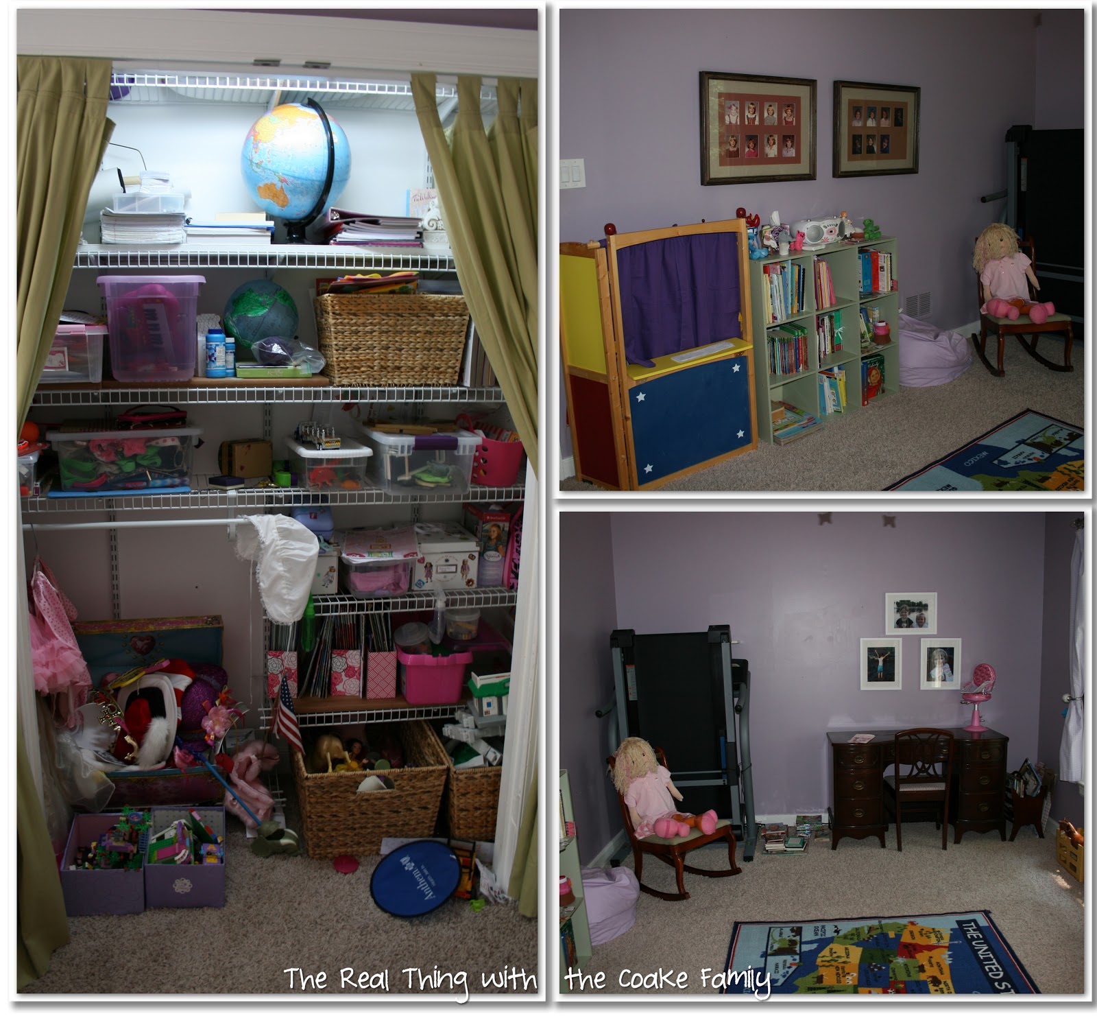 Our playroom is our 3rd bedroom. Snowflake and Pumpkin share the 2nd bedroom. It works well for us for now. The playroom is also our guest bedroom when we have guests. (We have an air mattress that gets put on the floor).